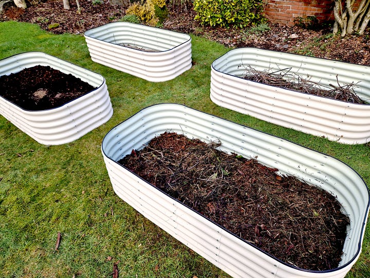 You are making what appears to me to be rapid progress: and I am mightily impressed. I have never been a fan of massive areas of grass: so it's the raised beds and clever path-making that appeal most… – making brilliant use of all that excess cardboard!