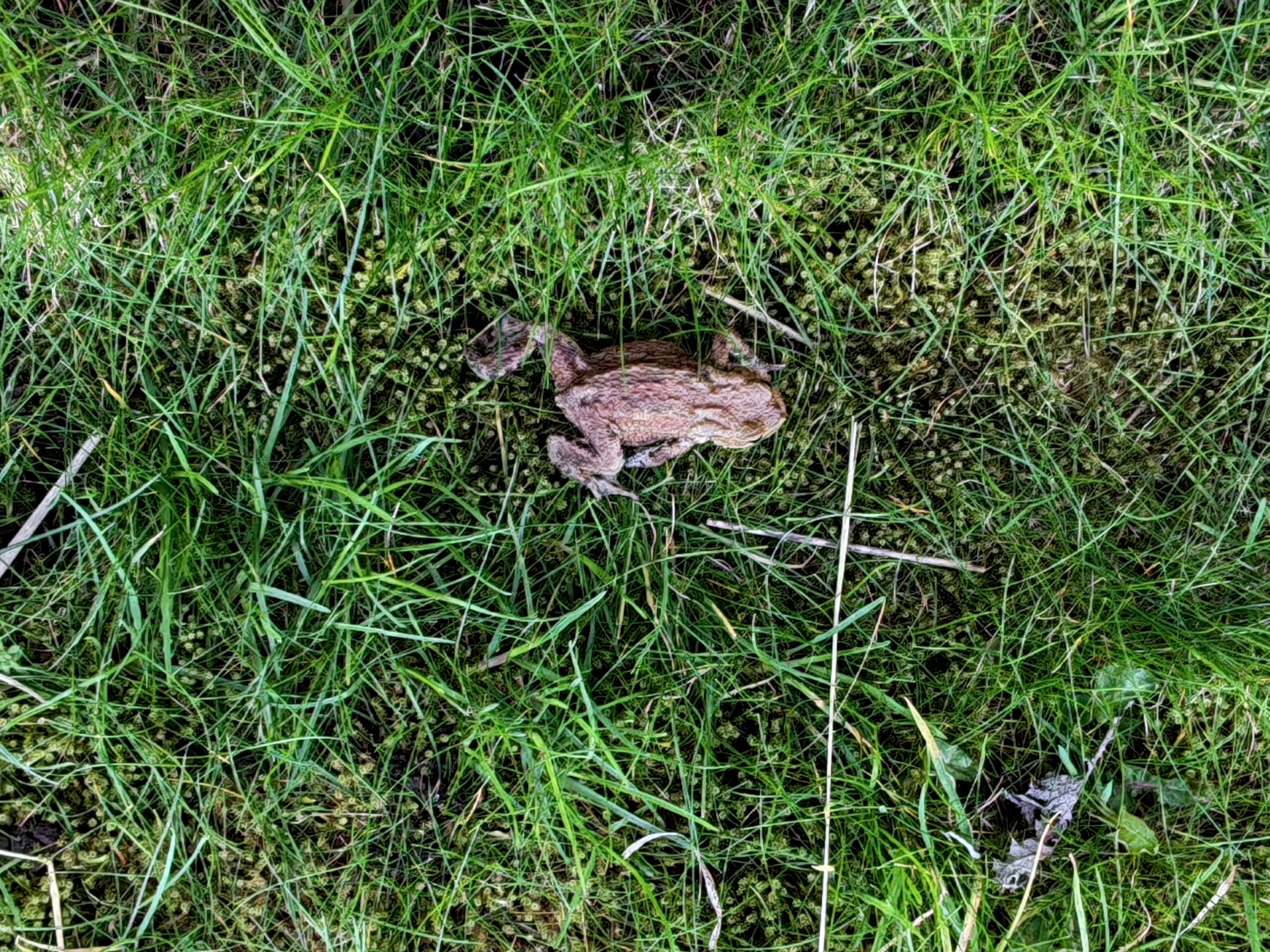 After a break for lunch we headed down to the very front of the garden, where a large raised bed was already present when we moved in. On the way I spot a beautiful peacock butterfly fluttering by. And a little toad in the long grass, presumably heading to the pond. I hope the heron is looking the other way!