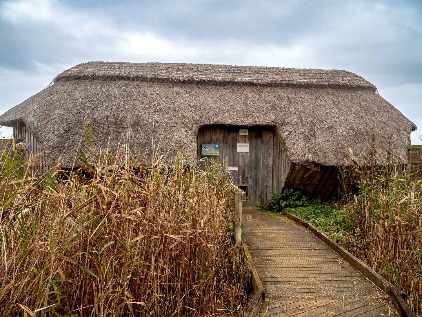 It made me realise how lucky I was to have lived conveniently close to nature reserves with hides. The structures vary from very basic shelters to elaborate multi-floor structures with luxurious seating, but all offer shelter from the weather and the opportunity to get close to wildlife without causing disturbance.