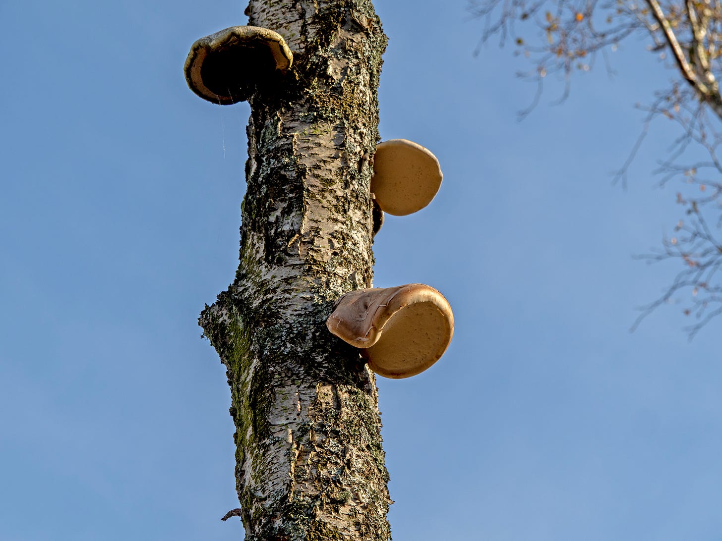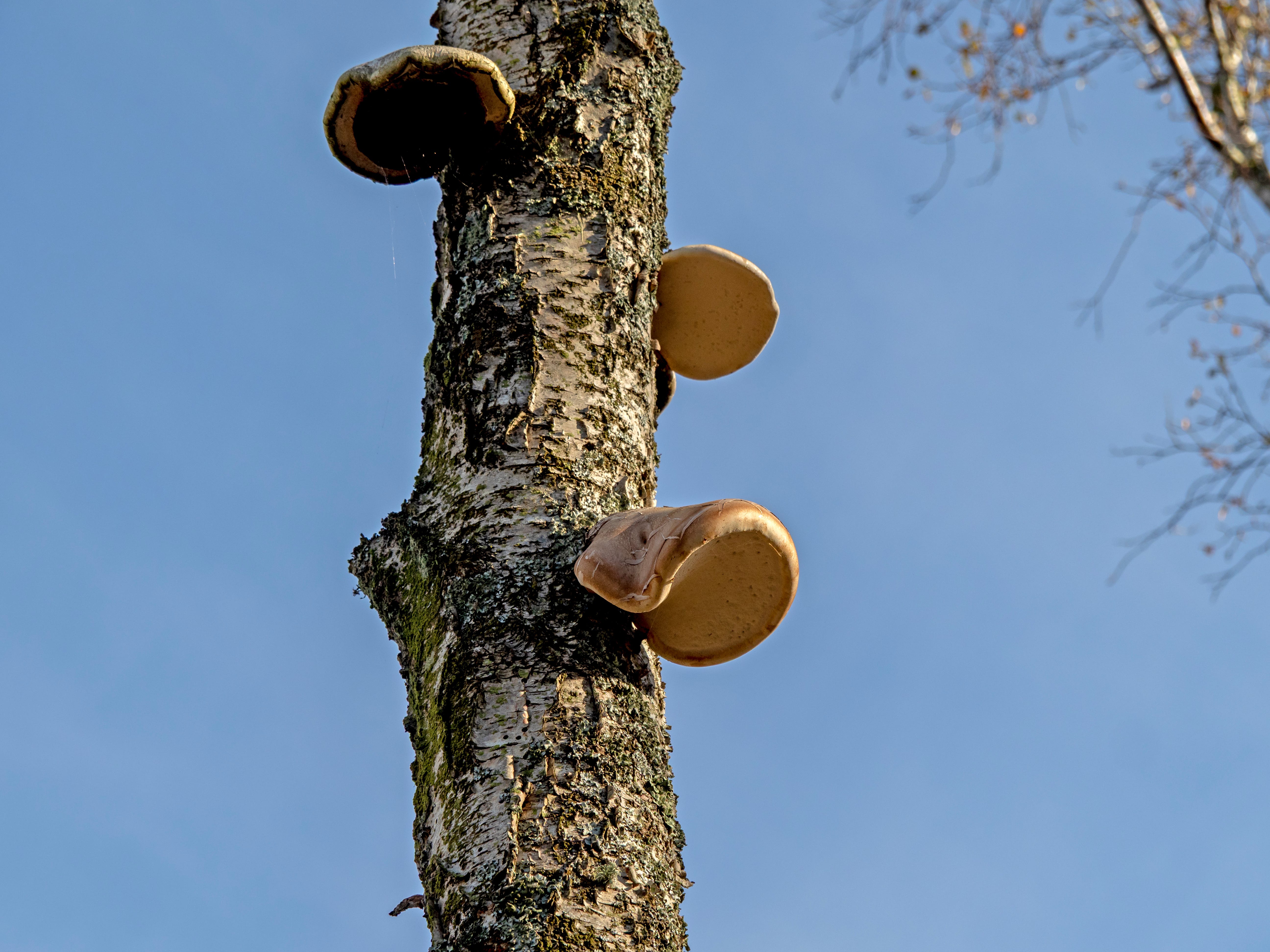We noticed some fine specimens of birch bracket fungus growing from the trunks of some of the damaged trees.