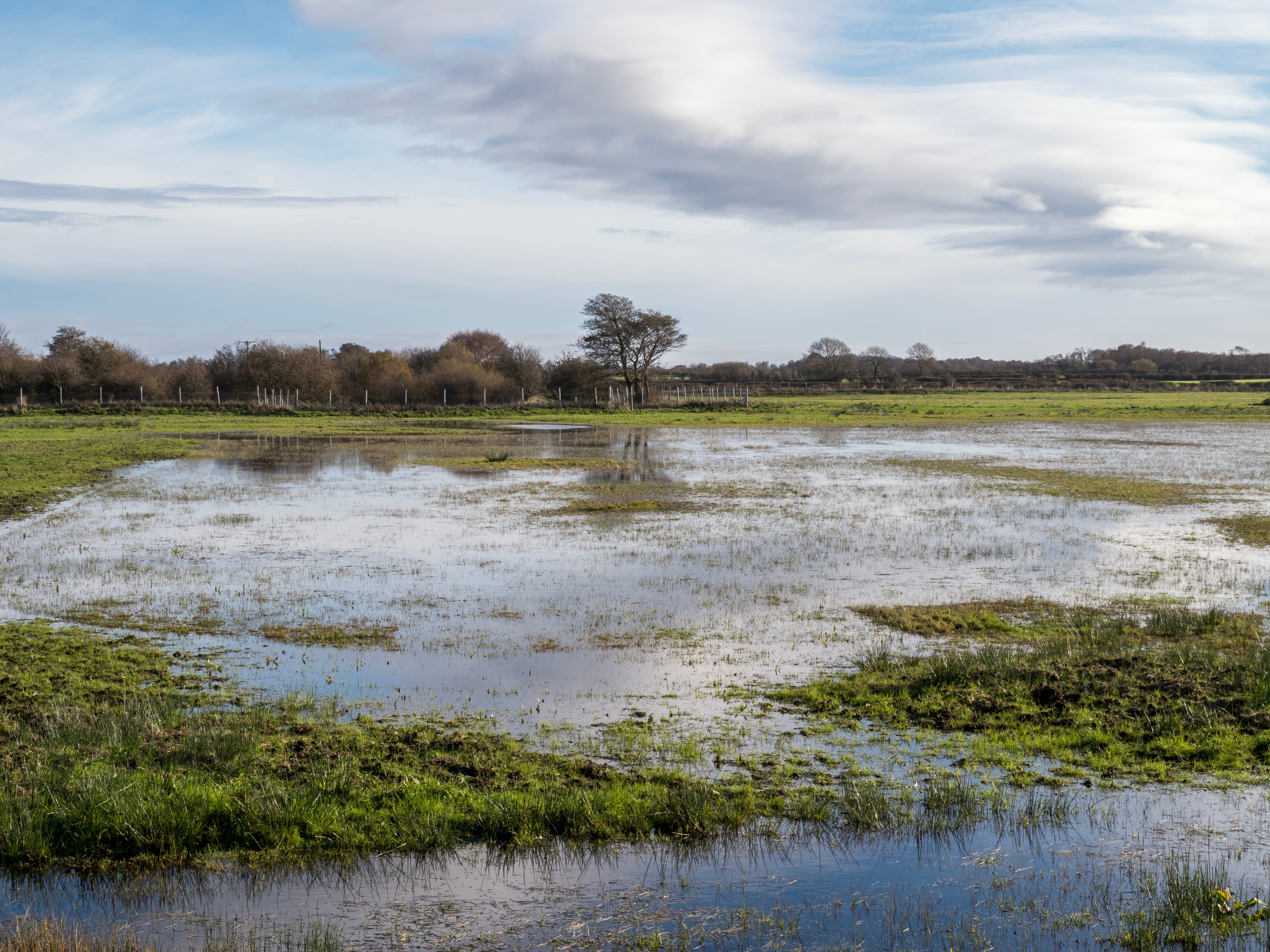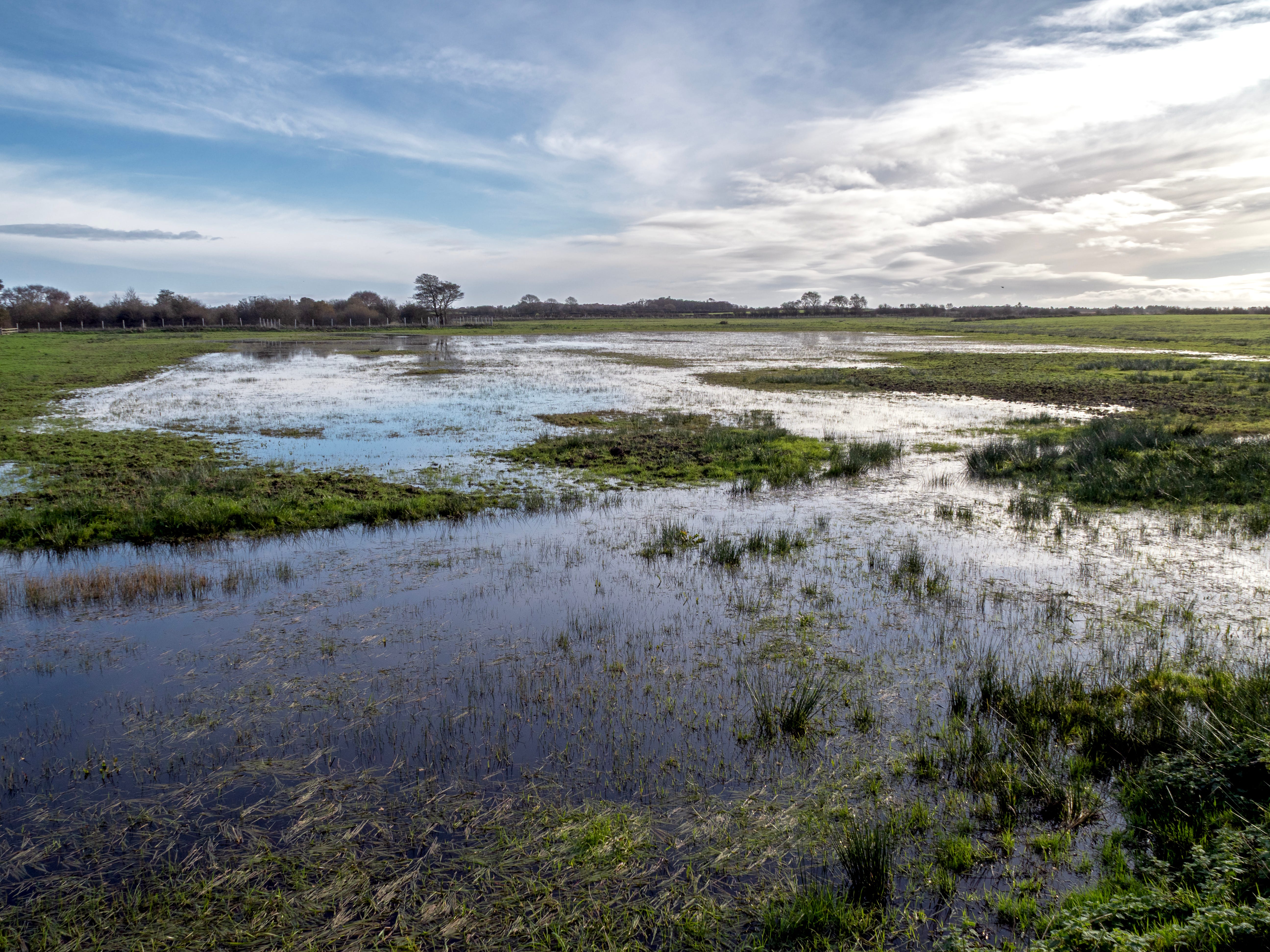 From the convenient car park a clear lane sets off through the grassland. On our first visit the meadows were dry except for a couple of ponds, but on our latest trip several of the meadows were waterlogged after heavy rain. A couple of sturdy open-fronted hides give excellent views along the way.