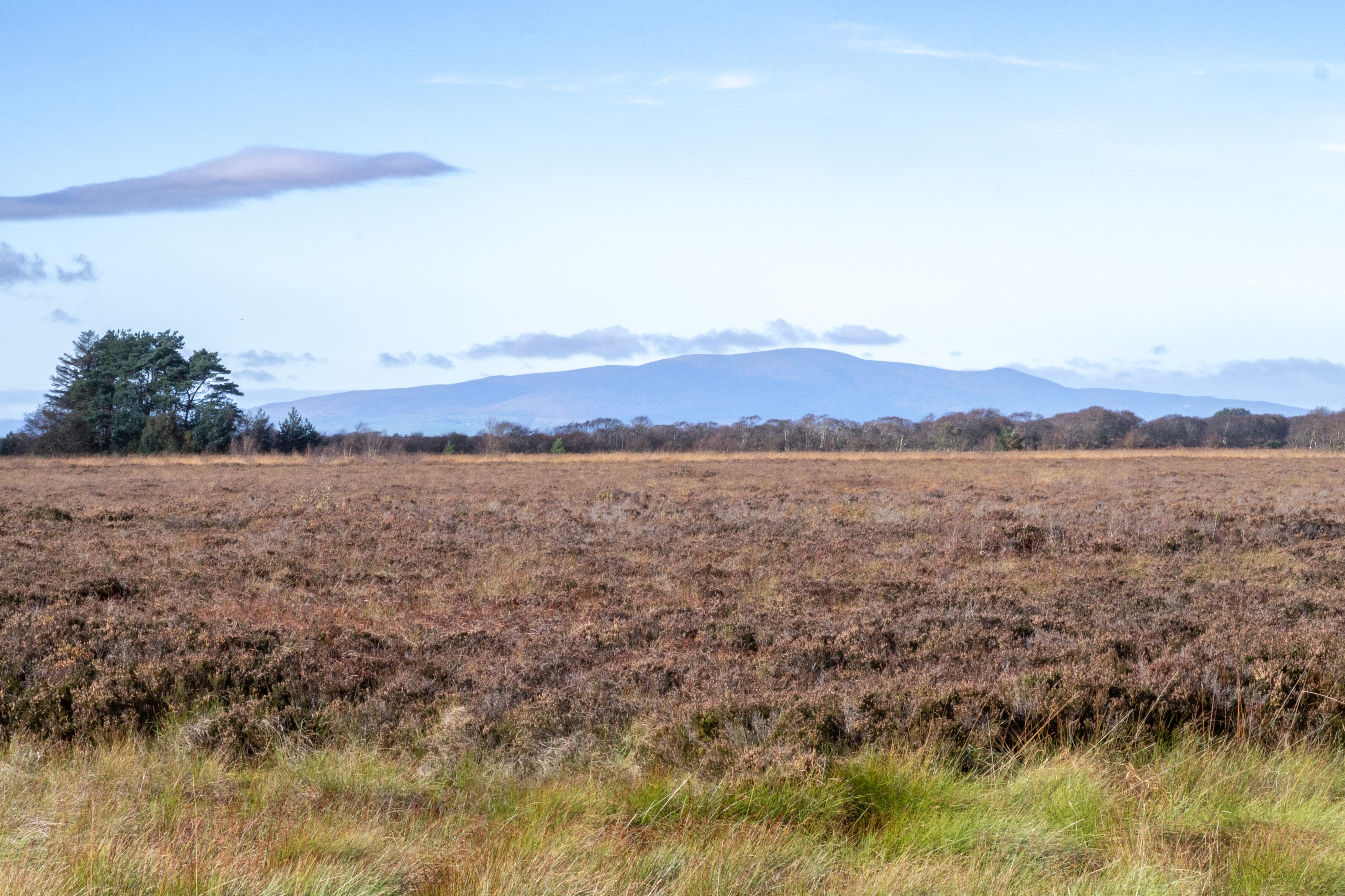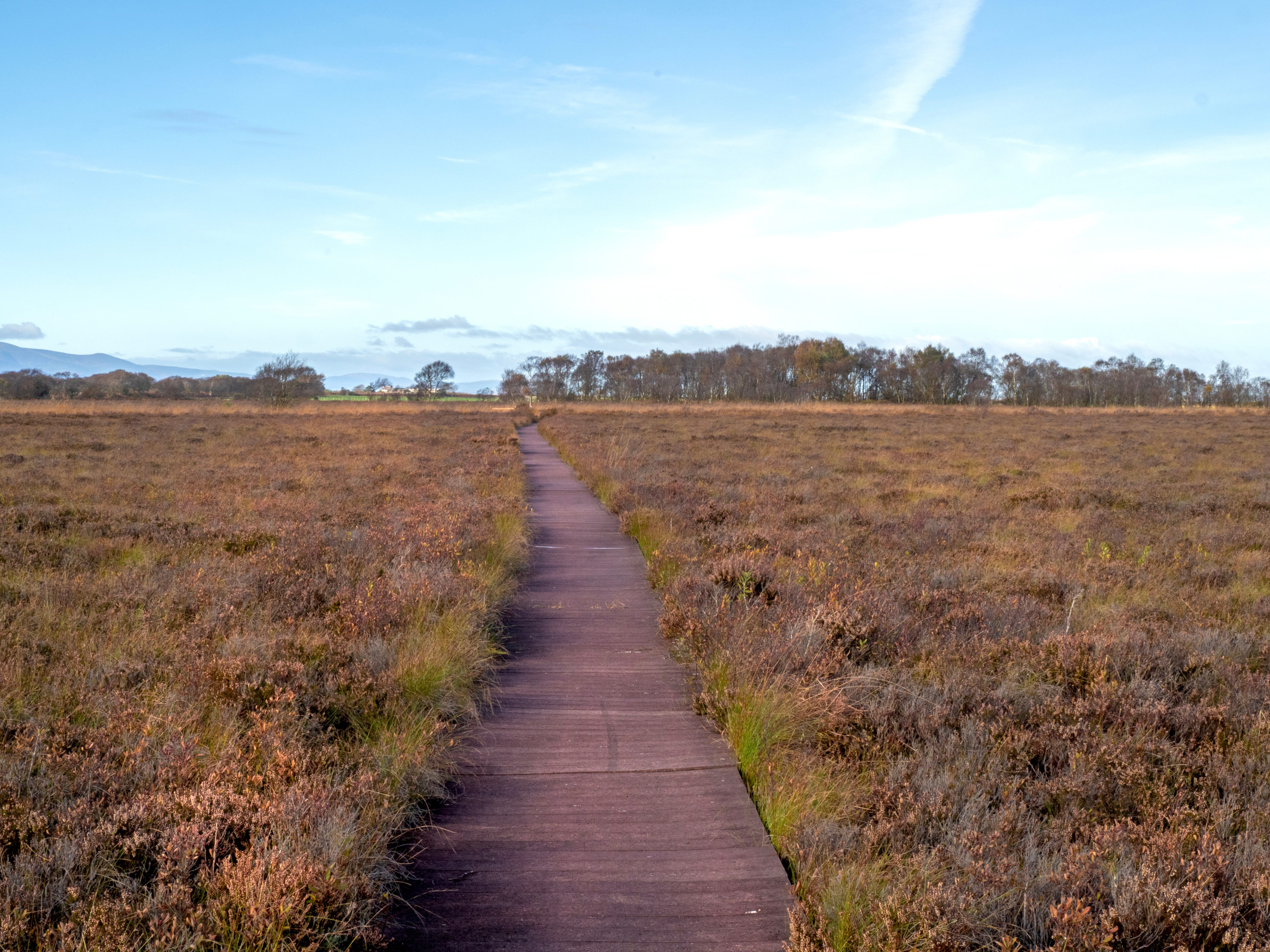 After passing the fields an excellent boardwalk is reached. This takes you on a long loop through the raised bog habitat that is so characteristic of this area.