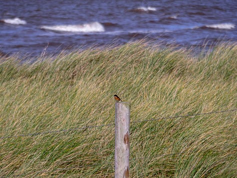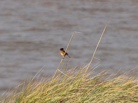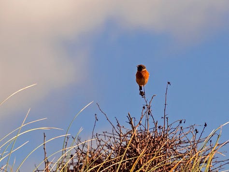 The presence of the sparrowhawk caused understandable panic, and ‘chat chat’ sounds were coming from the nearby dunes. Several agitated stonechats soon appeared, clearly checking that the danger had passed.